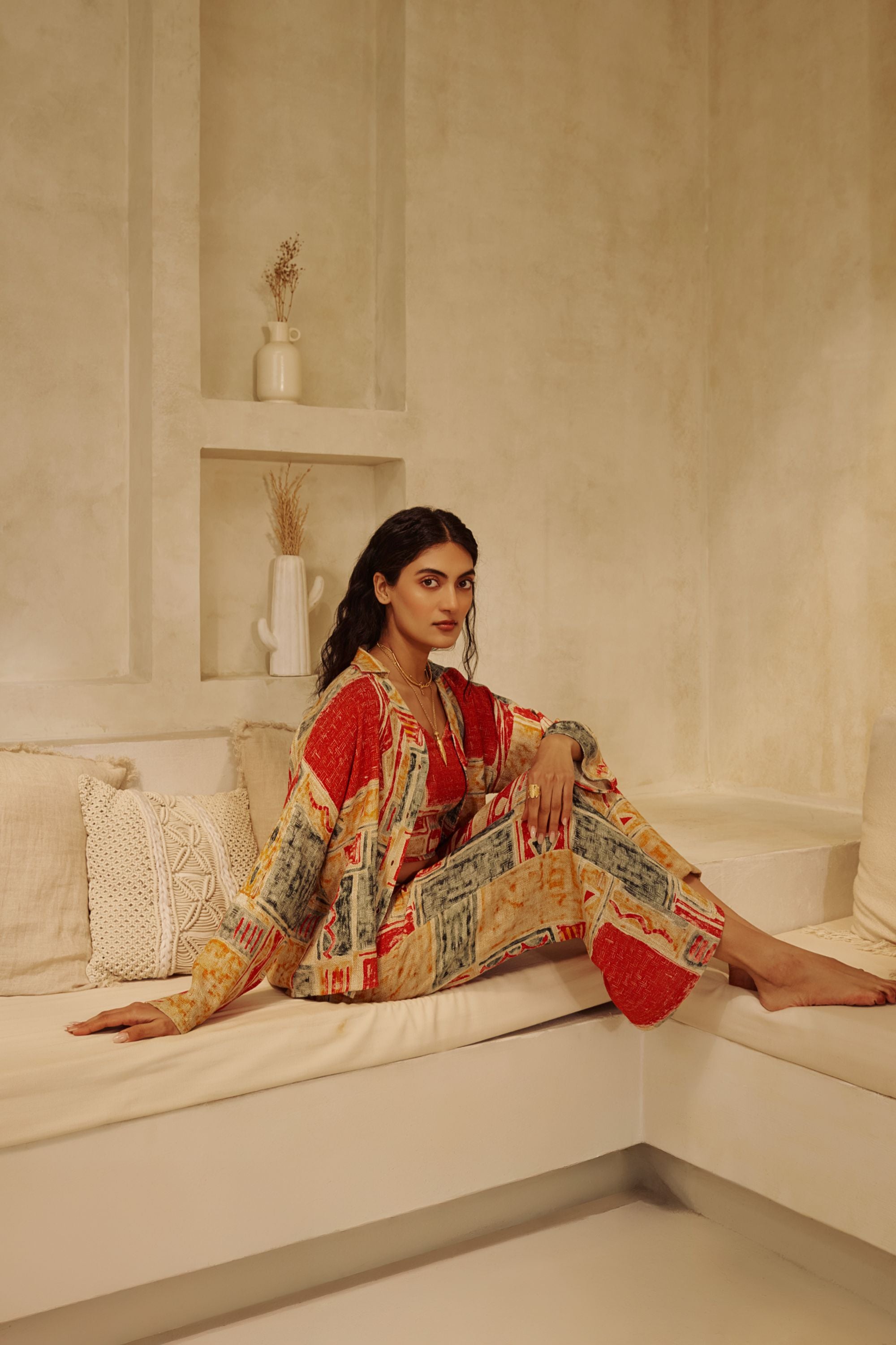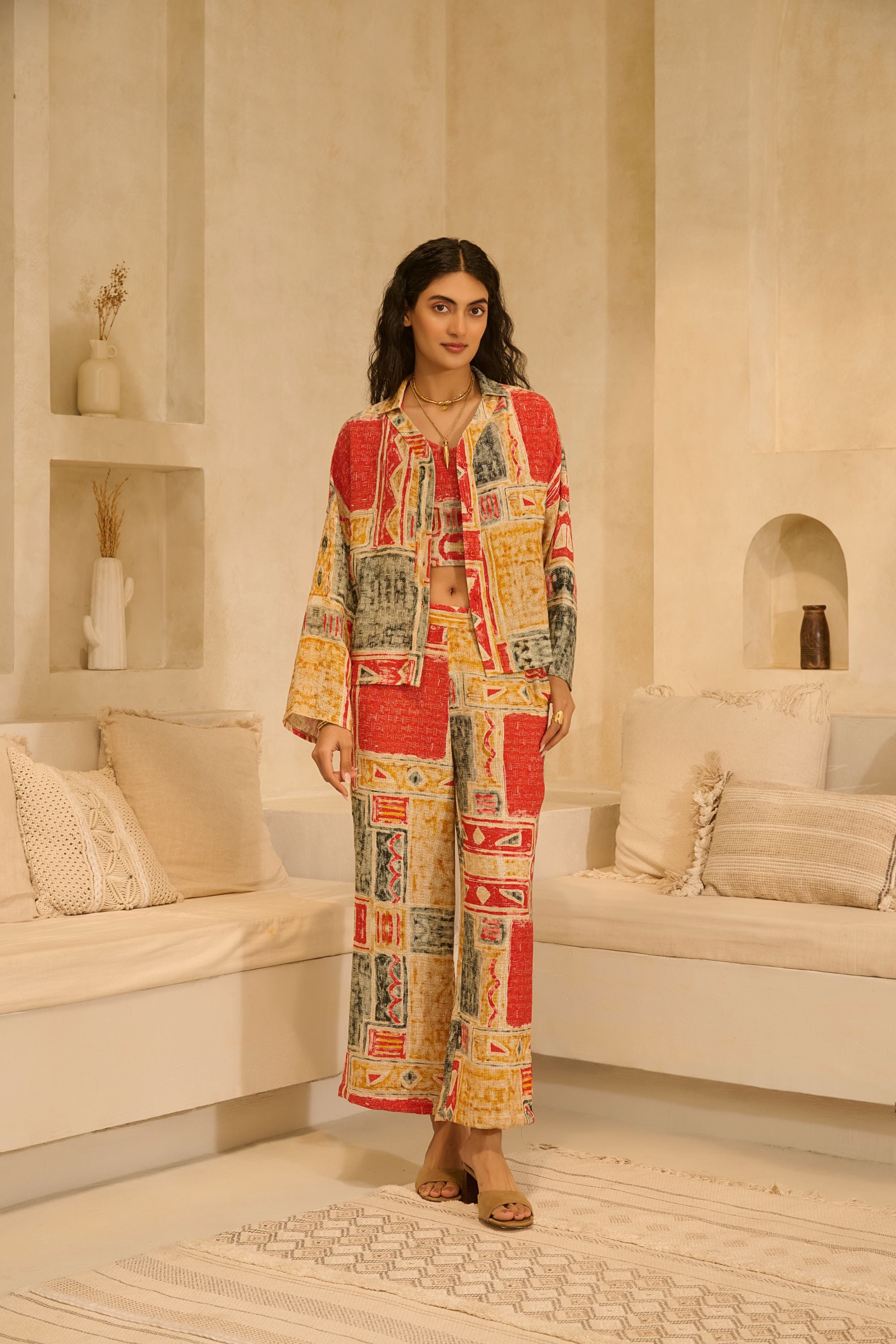 A coordinated three-piece set with patch prints across all layers. Made from cotton, it allows ease of movement and all-day comfort.